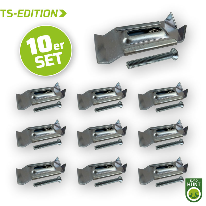 umfasst 10 Qualitätskammern aus Metall von EUROHUNT für die sichere und unsichtbare Befestigung Ihrer Rehbocktrophäen auf einem Trophäenschild.