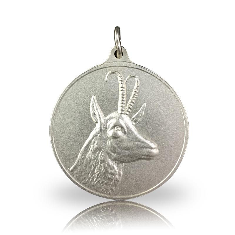 Diese Medaille, in hochwertiger und massiver Ausführung, ist in den Farblegierungen vergoldet, versilbert, bronze und altsilber erhältlich. Die gravierbare Fläche der Rückseite wird von einem Kranz umrahmt.