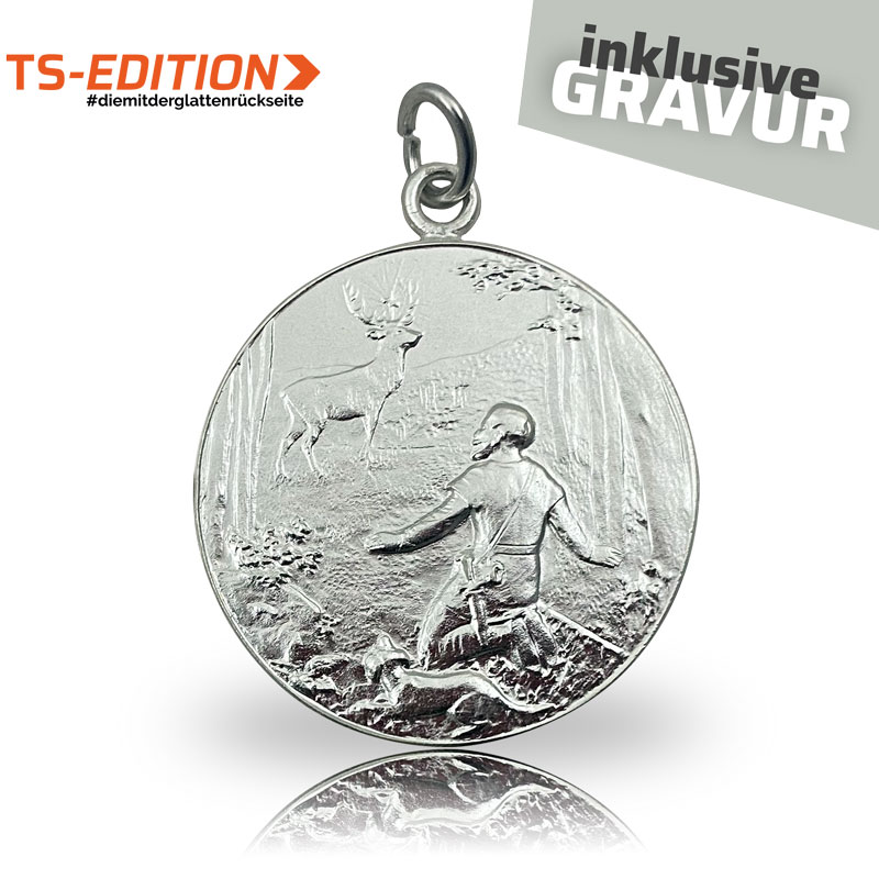 Jagdmedaille Motiv SANKT HUBERTUS in versilbert