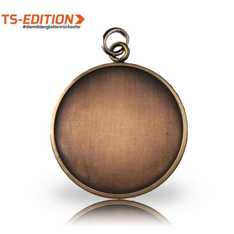 Diese Medaille, in hochwertiger und massiver Ausführung, ist in den Farblegierungen gold, altsilber und altbronze (bronziert) erhältlich. Ihre glatte Rückseite (ohne Kranz) ist sehr gut zum Gravieren geeignet – ideal für viel Text.