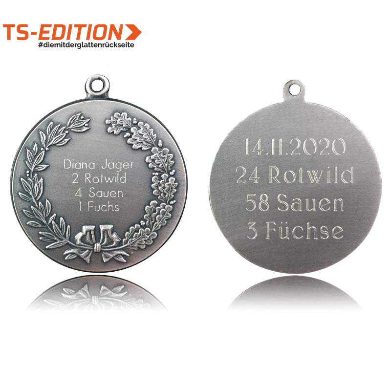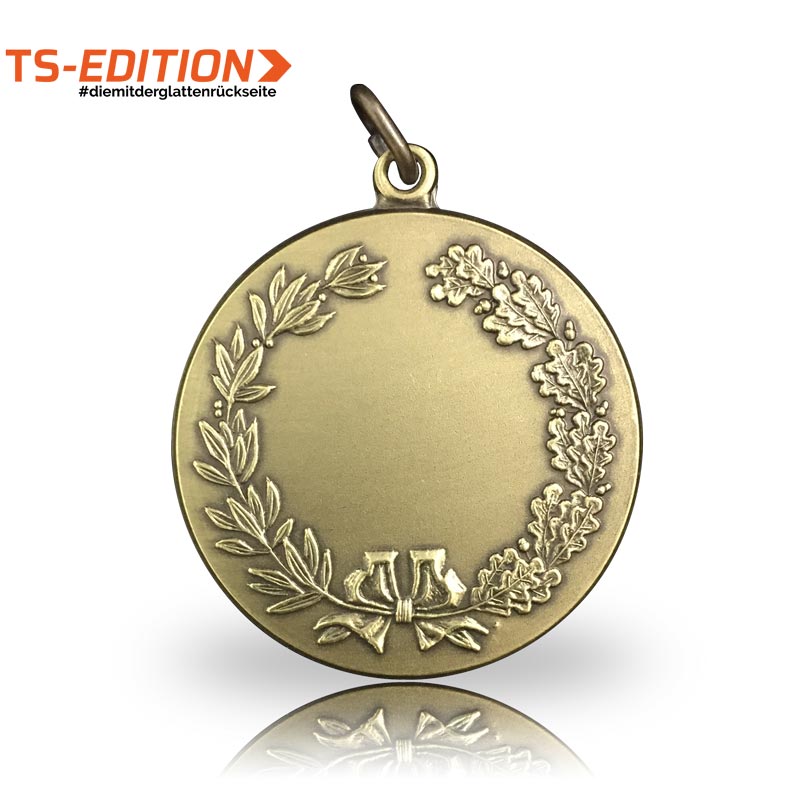 Diese Medaille, in hochwertiger und massiver Ausführung, ist in den Farblegierungen vergoldet, versilbert, altsilber- und bronzefarbig erhältlich. Das Besondere dieser Medaille ist nicht nur ihre glatte Rückseite (ohne Kranz) die sehr gut zum Gravieren geeignet ist, sondern auch auf der Vorderseite gibt es die Möglichkeit einer Gravur.