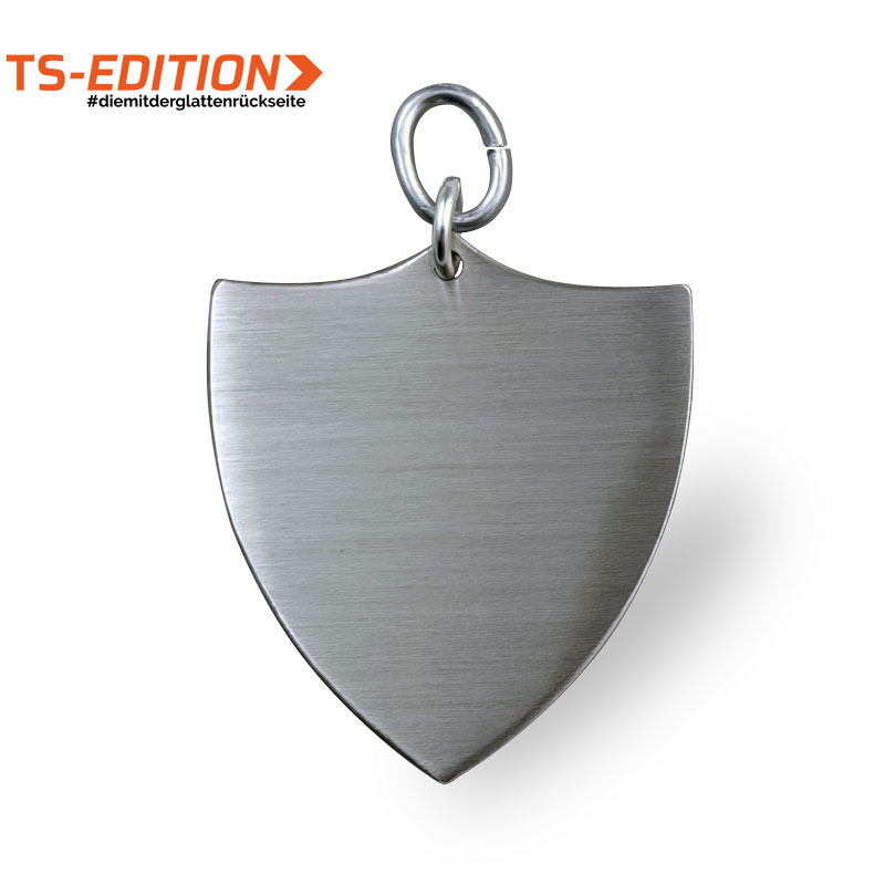 Die Wappenmedaille hat keine zusätzliche galvanische Beschichtung. Dadurch behält sie die natürliche Farbe des Neusilbers und somit eine authentische, matte Optik von der sich die Gravur silbrig glänzend abhebt.