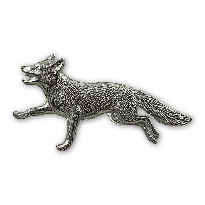 ist ein kleines Accessoire für alle passionierten Raubwildjäger und -jägerinnen. Es zeigt einen Fuchsrüden im Trab. Der Pin ist silberfarbig und wird mit dem rückwärtig angebrachten Butterfly- bzw. Schmetterlings-Verschluss befestigt.
