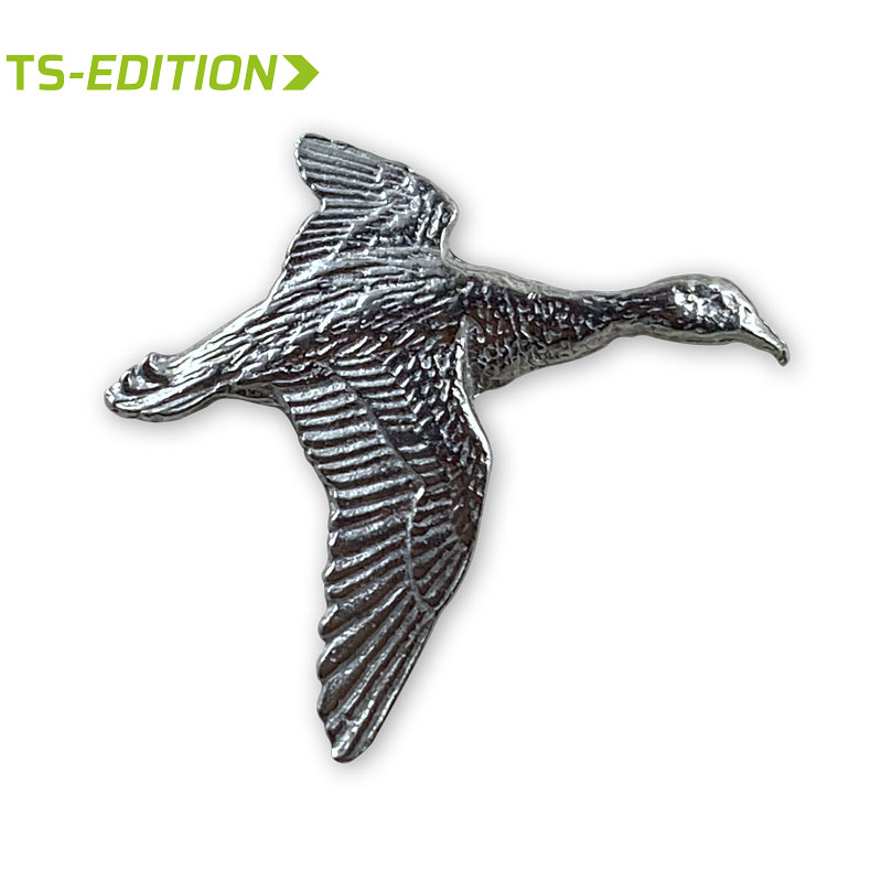 ist ein wunderschönes Accessoire für alle NiederwildjägerInnen, die eine besondere Leidenschaft für die Entenjagd haben. Das Motiv besteht aus einer detailreich gearbeiteten Stockente im Flug mit ausgebreiteten Schwingen. Der Pin ist in altsilber erhältlich und wird mit dem rückwärtig angebrachten Butterfly-Verschluss befestigt.