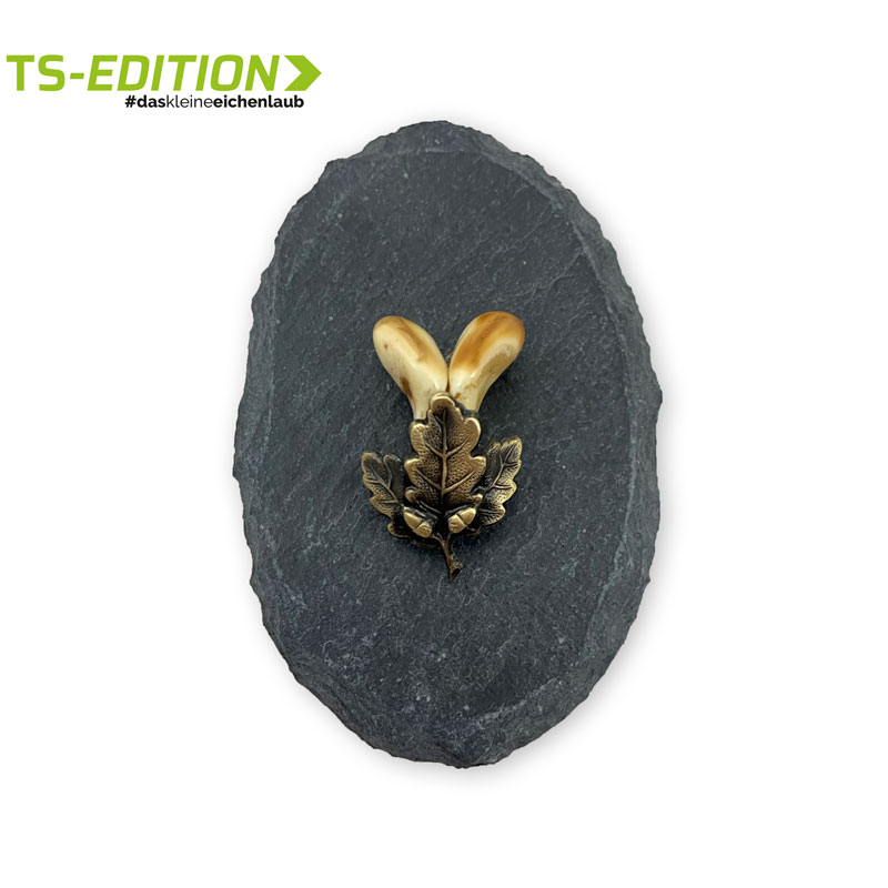 Preview: Montagebeispiel: das kleine Eichenlaub in bronze mit Grandeln auf Trophäenschiefer