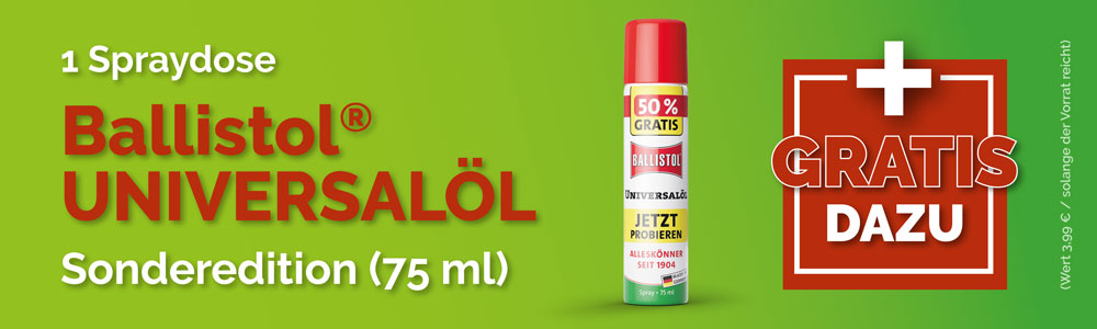 Dafür erhalten Sie 1 Spraydose Ballistol® Universalöl GRATIS dazu!