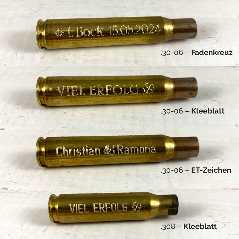 - Lieferbar in Kaliber: .30-06 / 8x57IS / .308 Messing / .308 silberfarbig / .300 Win Mag