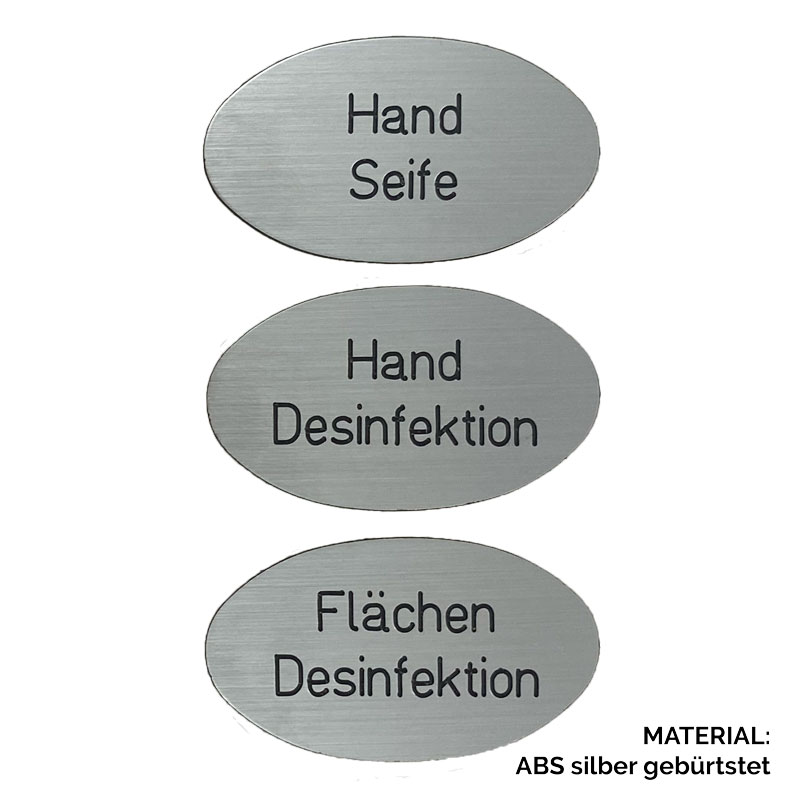 Außerdem in ABS silber gebürstet. Hier wird die Schrift fräsgraviert und erscheint in Schwarz.