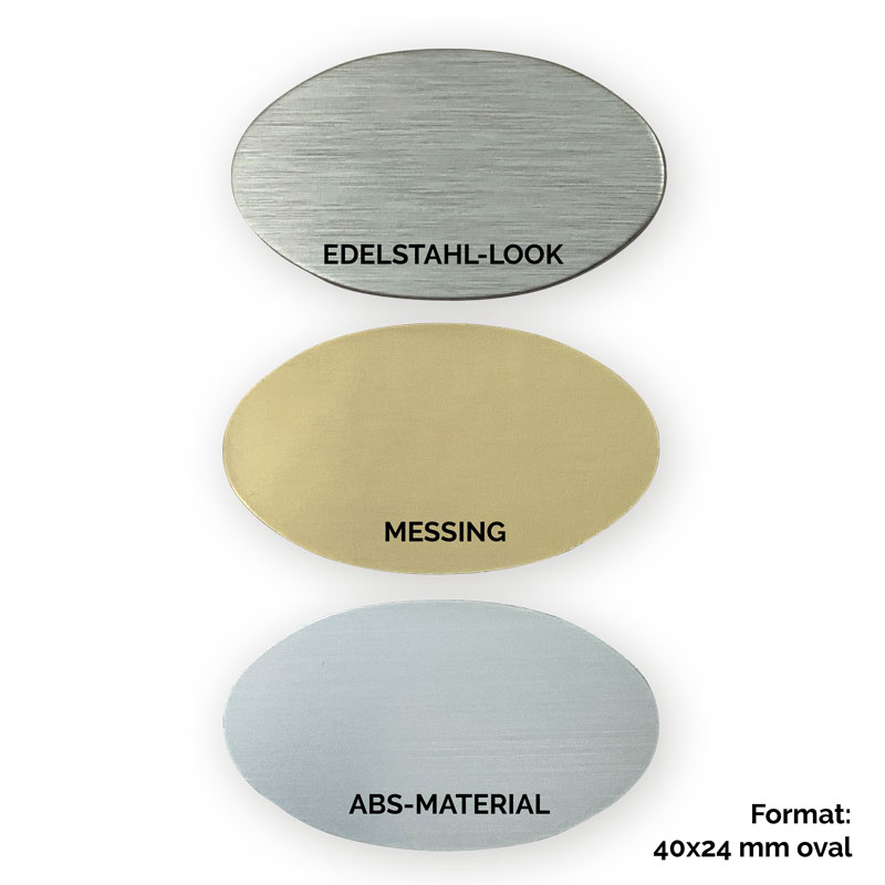 Diese ovalen Plaketten sind ca. 40x24 mm groß und gibt es in 3 verschiedenen Ausführungen:
