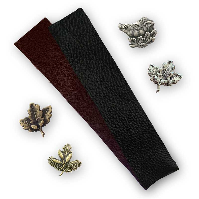 ist eine weitere elegante Alternative zum klassischen Eichenlaub und ideal für alle Selbermacher. Den Lederstreifen gibt es in den Ausführungen schwarz oder braun. Dazu stehen Ihnen 9 verschiedene Accessoires zur Auswahl, um den zeitlosen Lederstreifen optisch abzurunden.