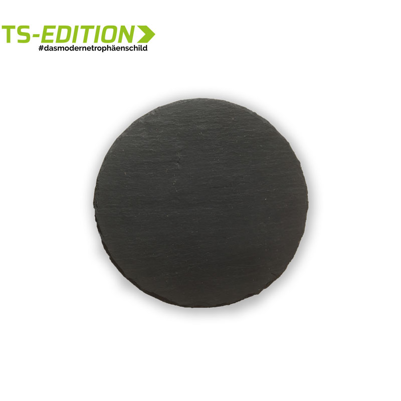 sind moderne, runde Schieferschilder aus hochwertigem Naturgestein aus unserer TS‑EDITION für die Präsentation Ihrer erlegten Keilerwaffen.