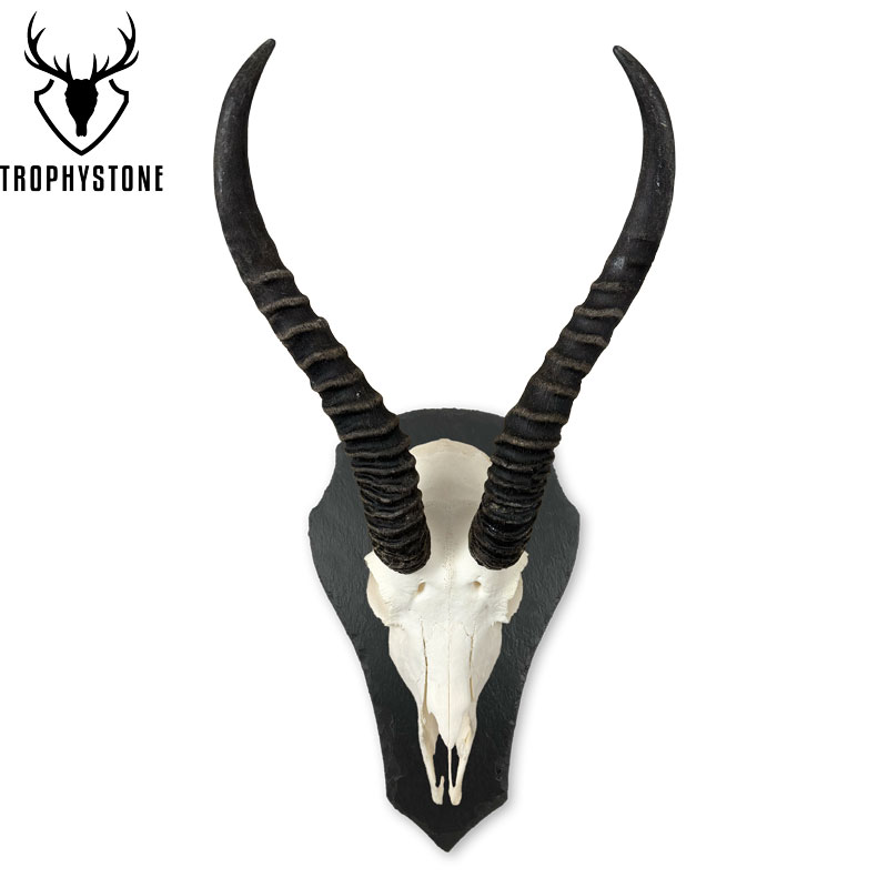 sind moderne, handgefertigte Trophäenschilder aus hochwertigem Naturgestein zur Präsentation Ihrer Springbocktrophäe. Hier ist jedes Schild ein Unikat. Mit der klassischen Tropfenform machen Sie Ihre Jagdtrophäe zu einer bleibenden Erinnerung, die in jede Einrichtung passt.